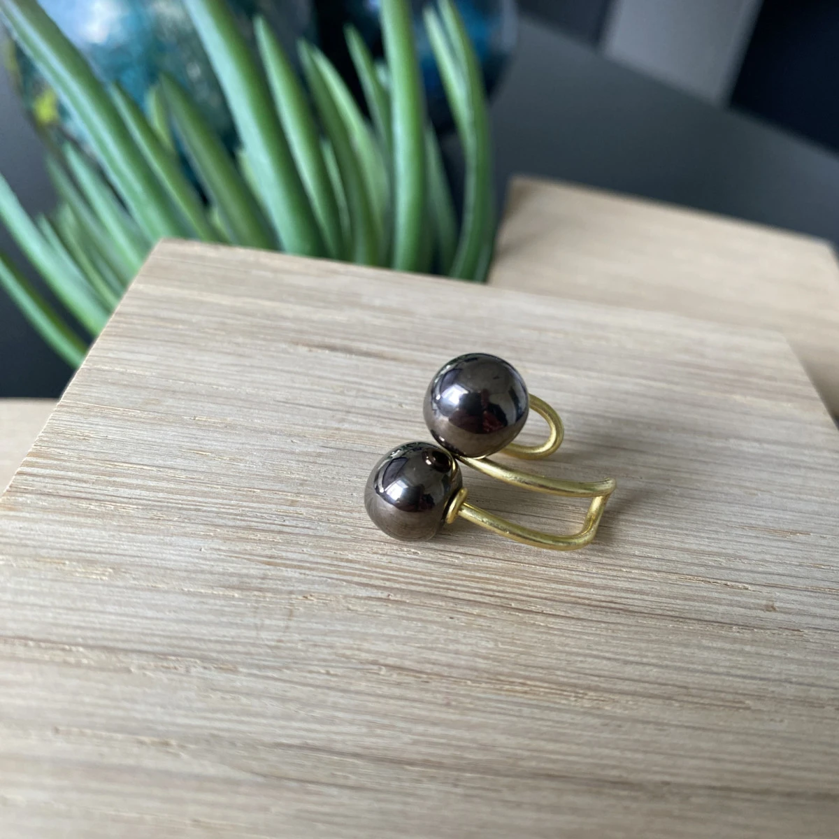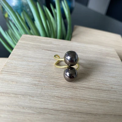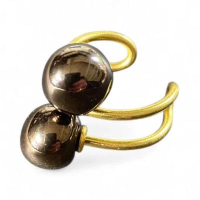 Strikkering udført i messing med 2 små keramikperler.