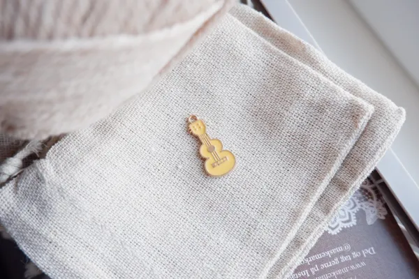 Elegant og smykkelignende maskemarkør i gyldent metal.