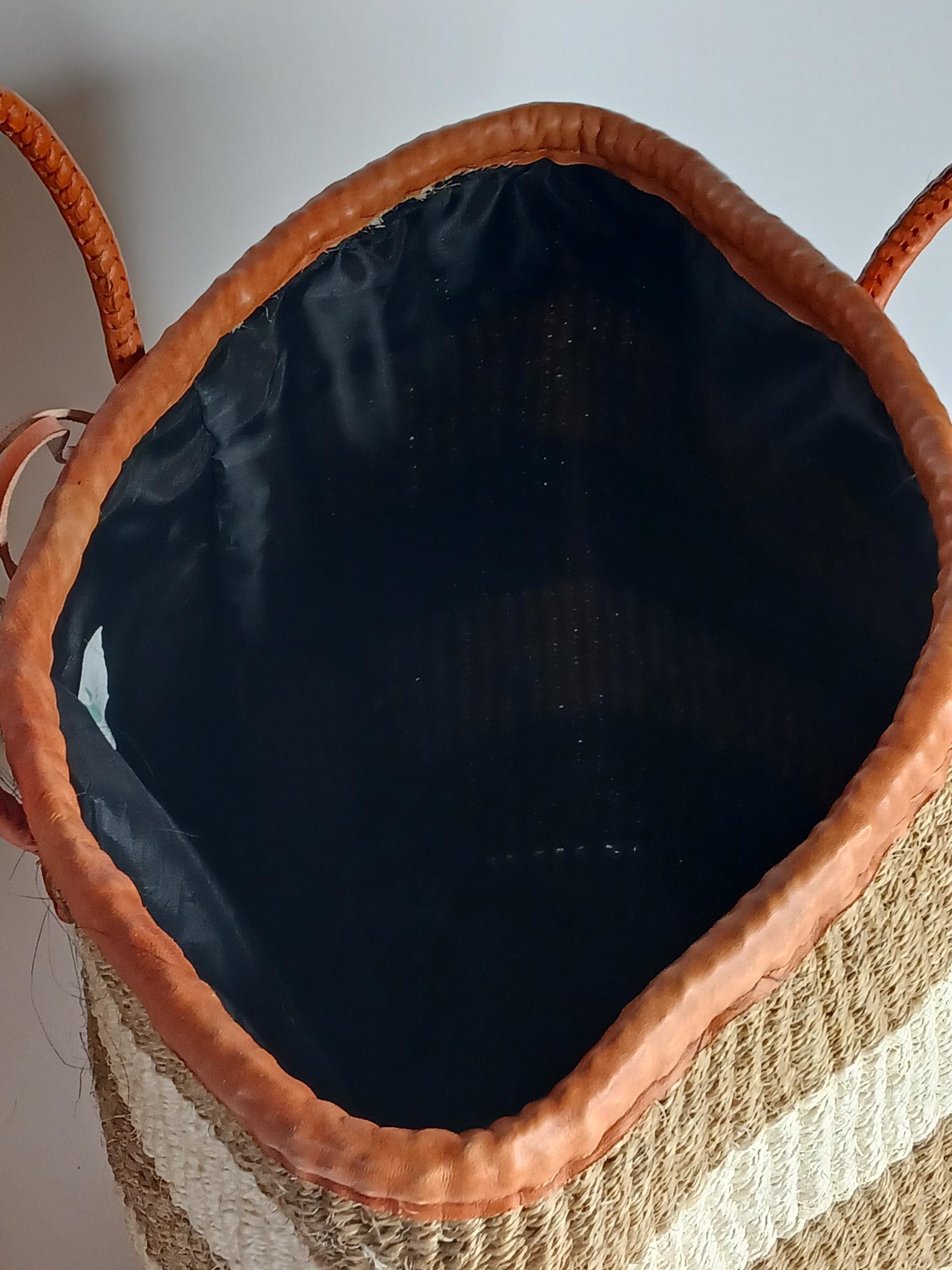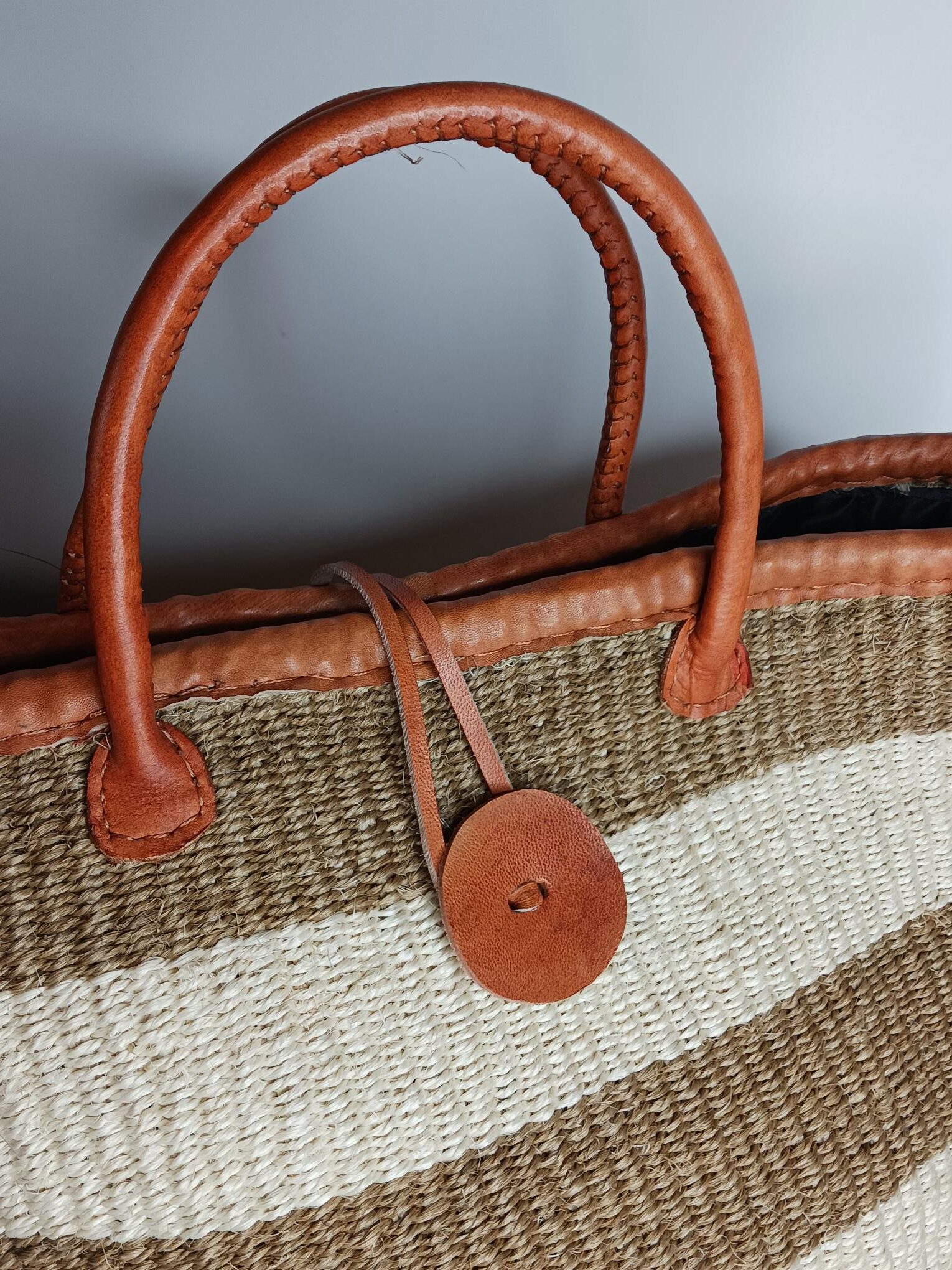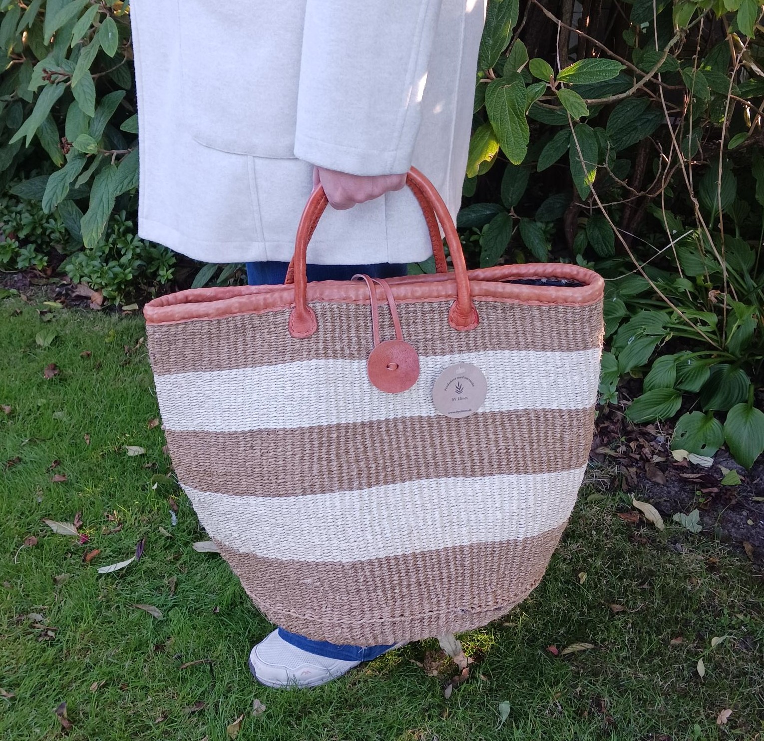 Materiale: Højkvalitets, slidstærkt vævet raffia med læderstropper