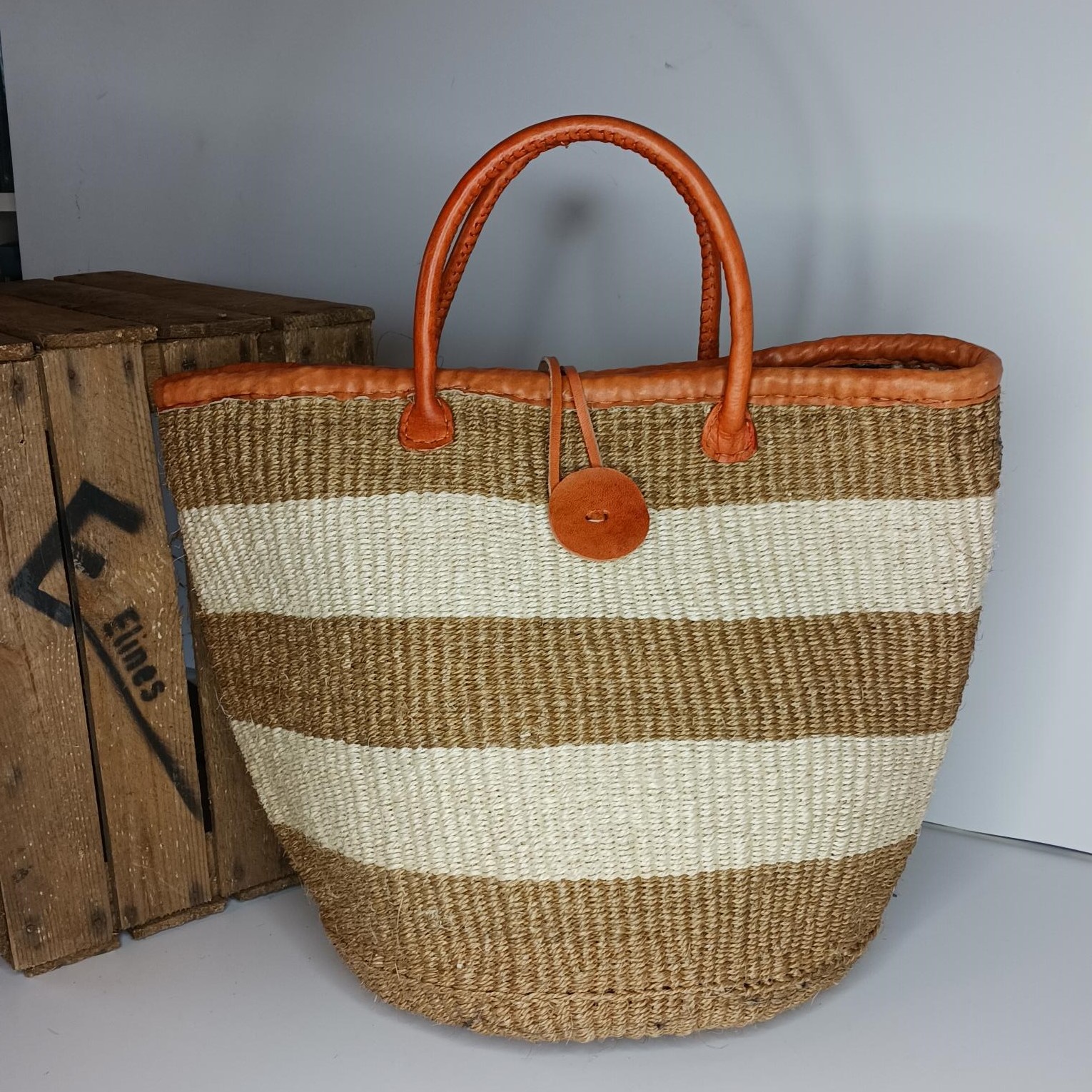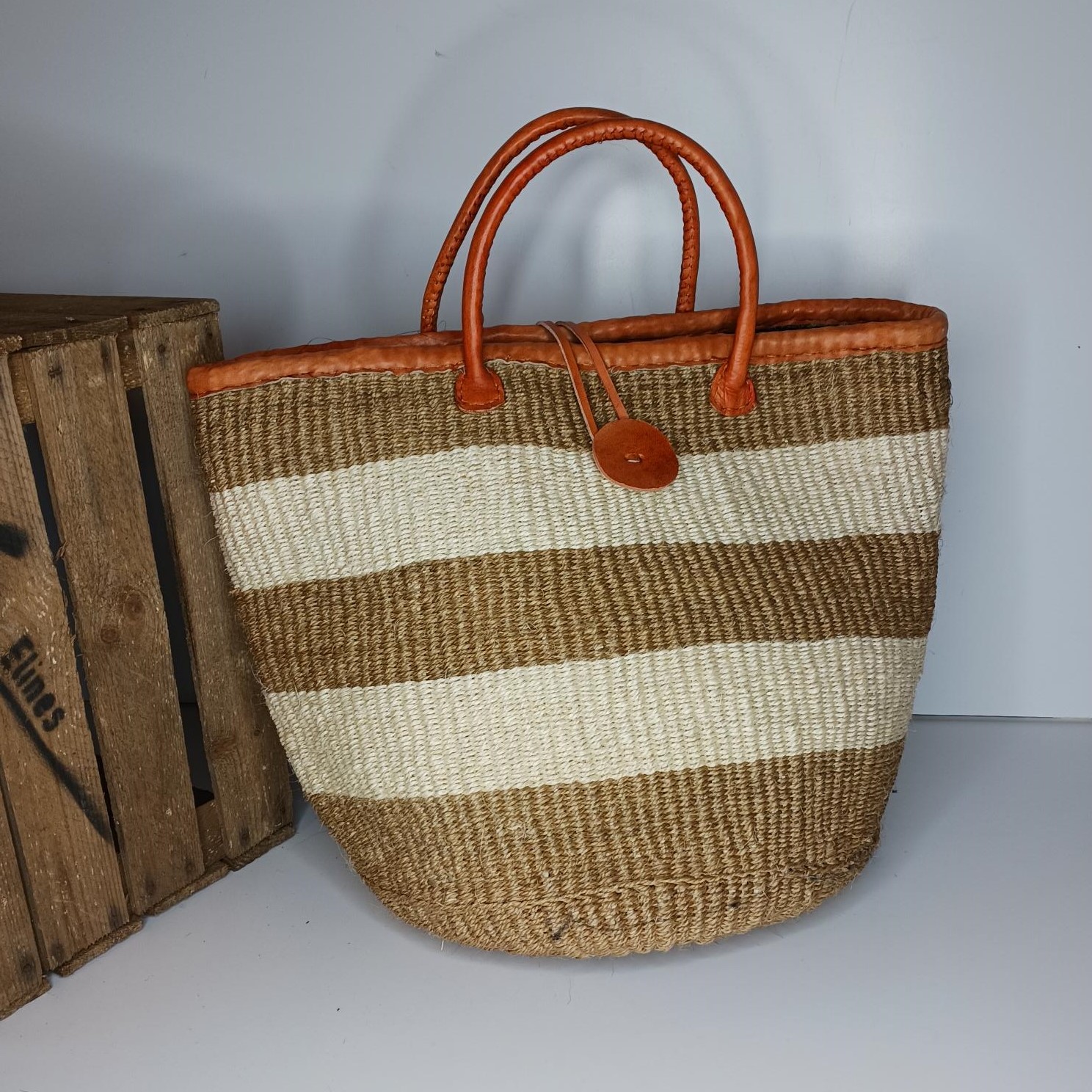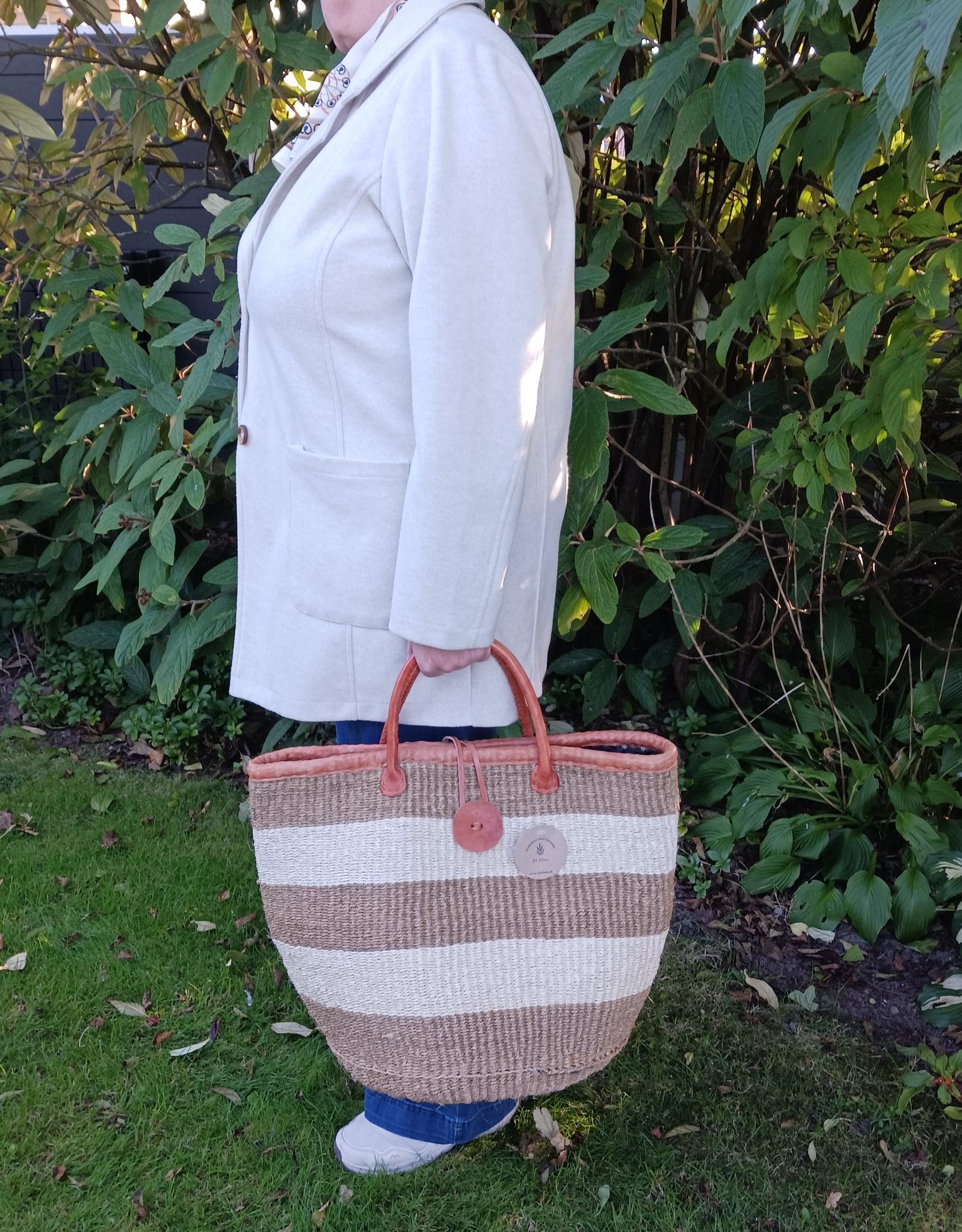 Materiale: Højkvalitets, slidstærkt vævet raffia med læderstropper