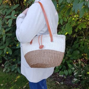 Materiale: Højkvalitets, slidstærkt vævet raffia med læderstropper