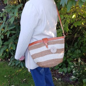Materiale: Højkvalitets, slidstærkt vævet raffia med læderstropper